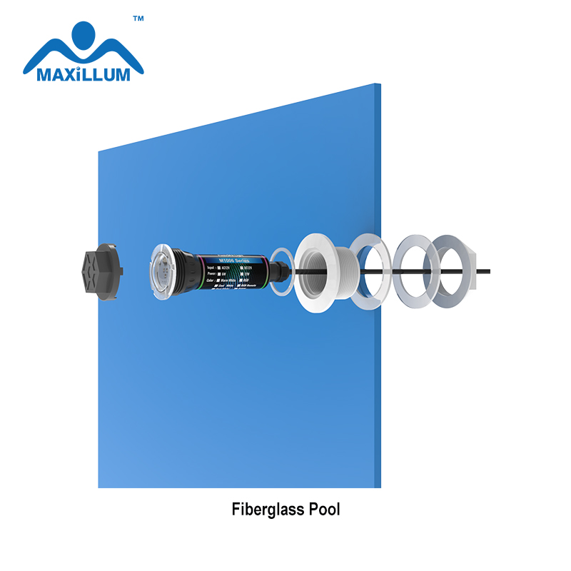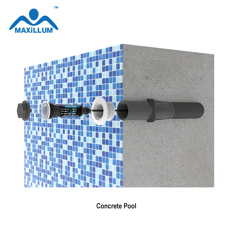 For concrete pools, builders should embed the 2-inch pipe during construction. During lamp installation, position the silicone seal at the lamp’s front end, insert the unit into the 1.5-inch thread, and secure it firmly using the special tool.